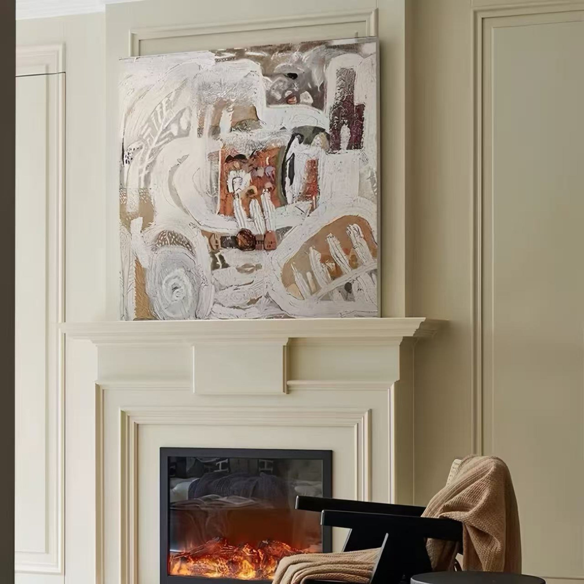 Soft Neutral Palette: A sophisticated mix of cream, beige, and grey accented with earthy olive and rust tones.